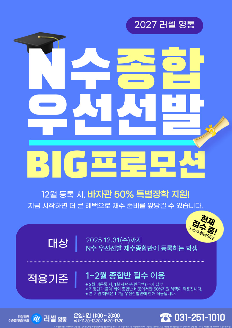 ¡¼ÇÁ·Î¸ð¼Ç¡½ 2027 N¼ö ¿ì¼±¼±¹ß Á¾ÇÕ¹Ý 50% ÆÄ°Ý Áö¿ø ÇýÅÃ!