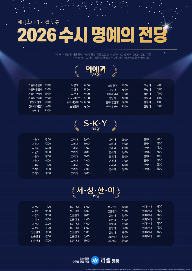 ¡Ú2026 ·¯¼¿ ¿µÅëÇпø ¼ö½Ã ÇÕ°ÝÀÚ ÇöȲ¡Ú