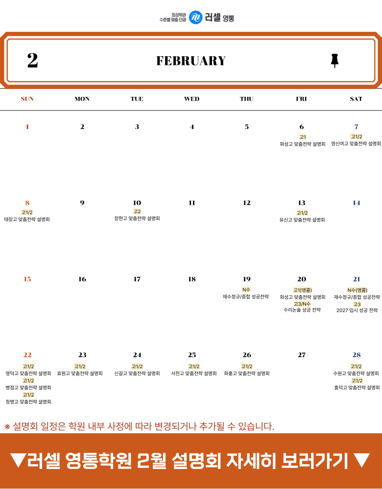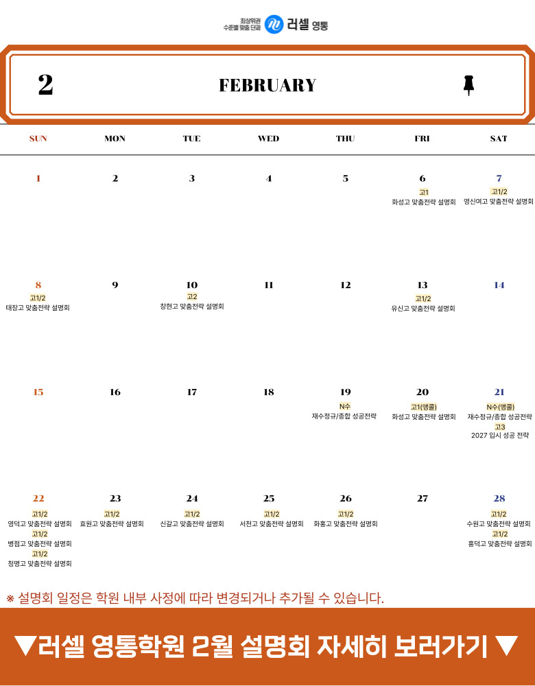 [ 2027-29 ´ëºñ ·¯¼¿ ¿µÅë ÀԽᤰú¸ñº° 2¿ù ¼³¸íȸ ÀÏÁ¤ ¾È³»]
