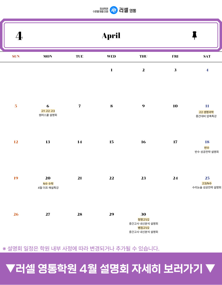 [ 2027-29 ´ëºñ ·¯¼¿ ¿µÅë ÀԽᤰú¸ñº° 4¿ù ¼³¸íȸ ÀÏÁ¤ ¾È³»]