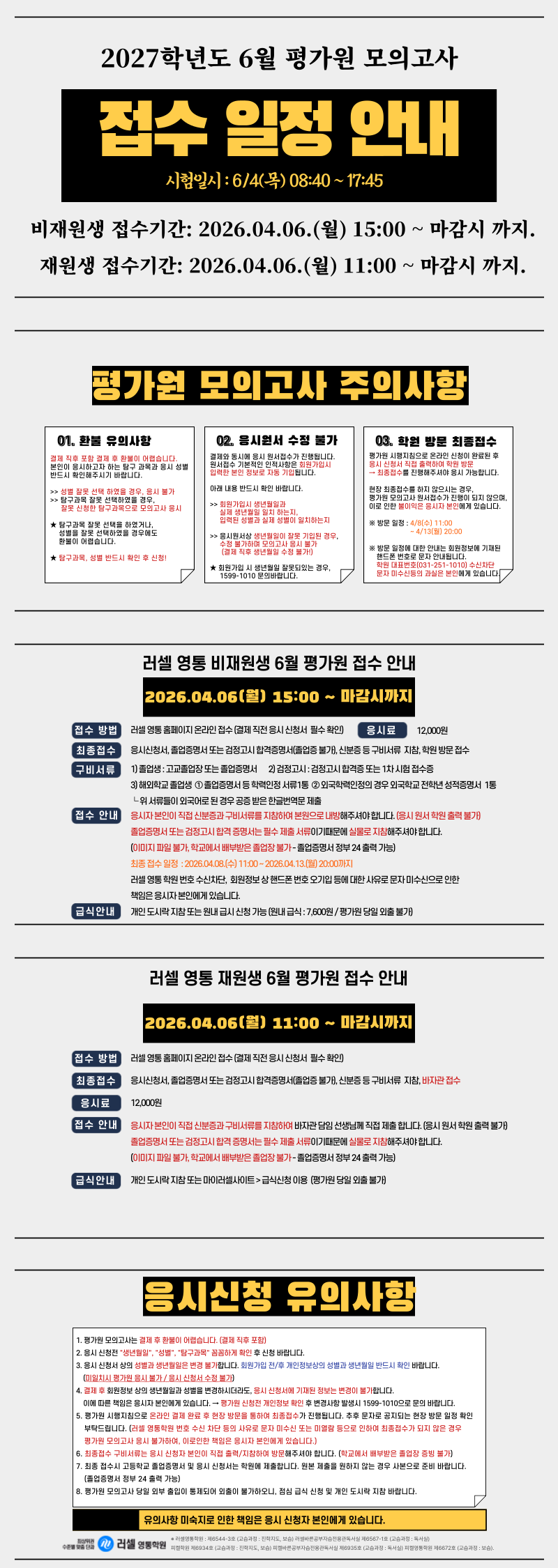 | ¡¶N¼ö¡·2027Çг⵵ 6¿ù Æò°¡¿ø Á¢¼ö ¾È³»(¡Ø ºñÀç¿ø»ý Á¢¼ö 4/6(¿ù) 15:00~) | |||