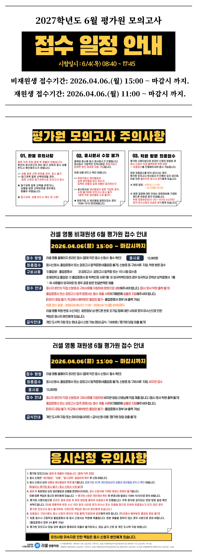 | ¡¶N¼ö¡·2027Çг⵵ 6¿ù Æò°¡¿ø Á¢¼ö ¾È³»(¡Ø Àüü ¸¶°¨µÇ¾ú½À´Ï´Ù.) | |||